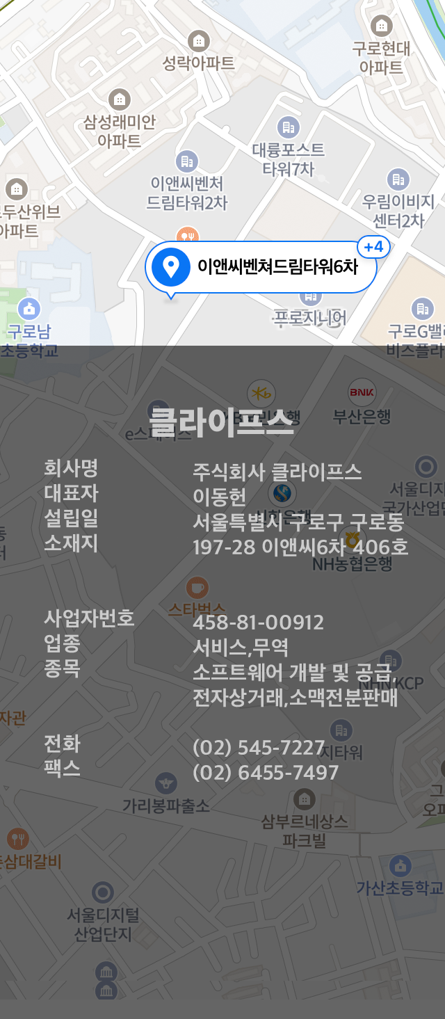 - 회사명주식회사 클라이프스